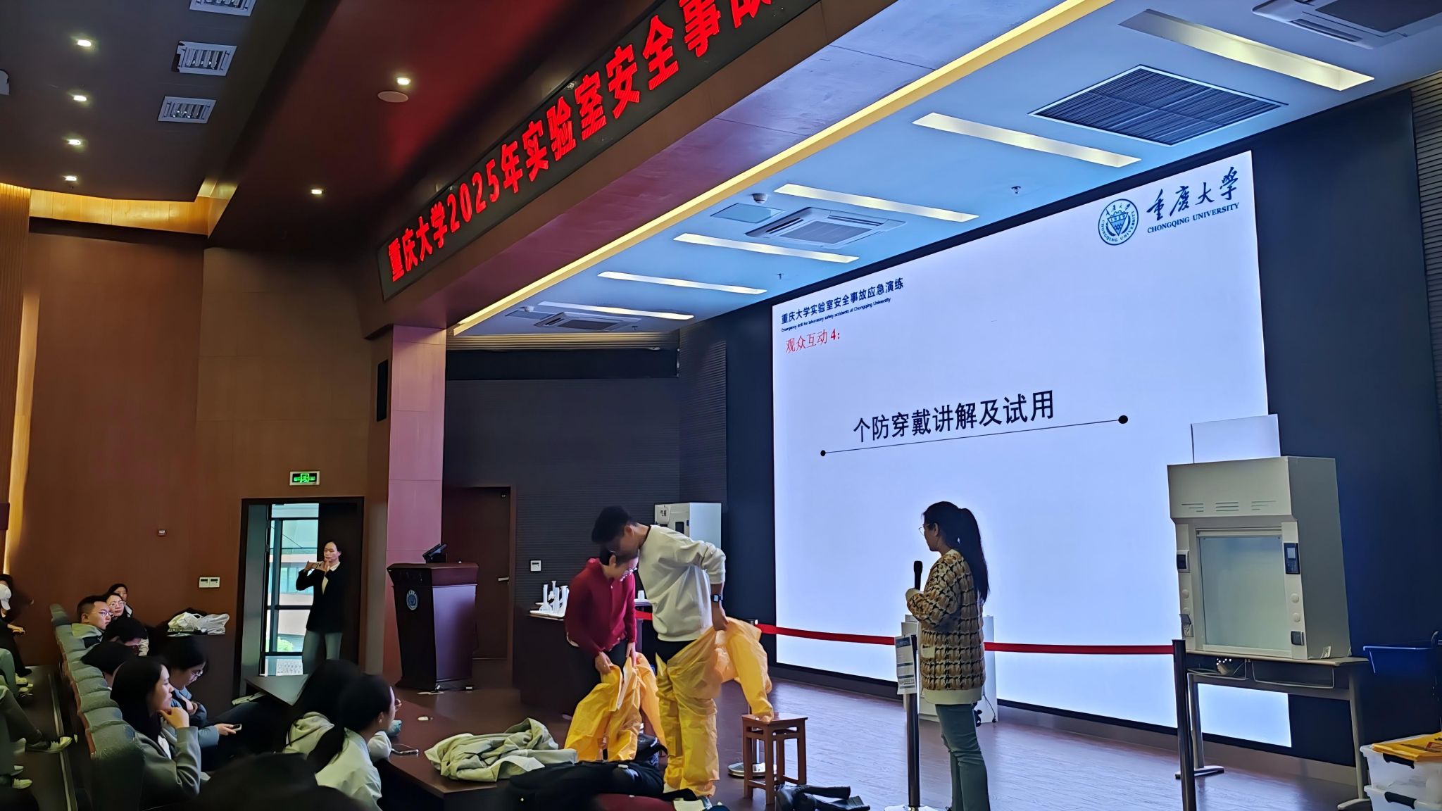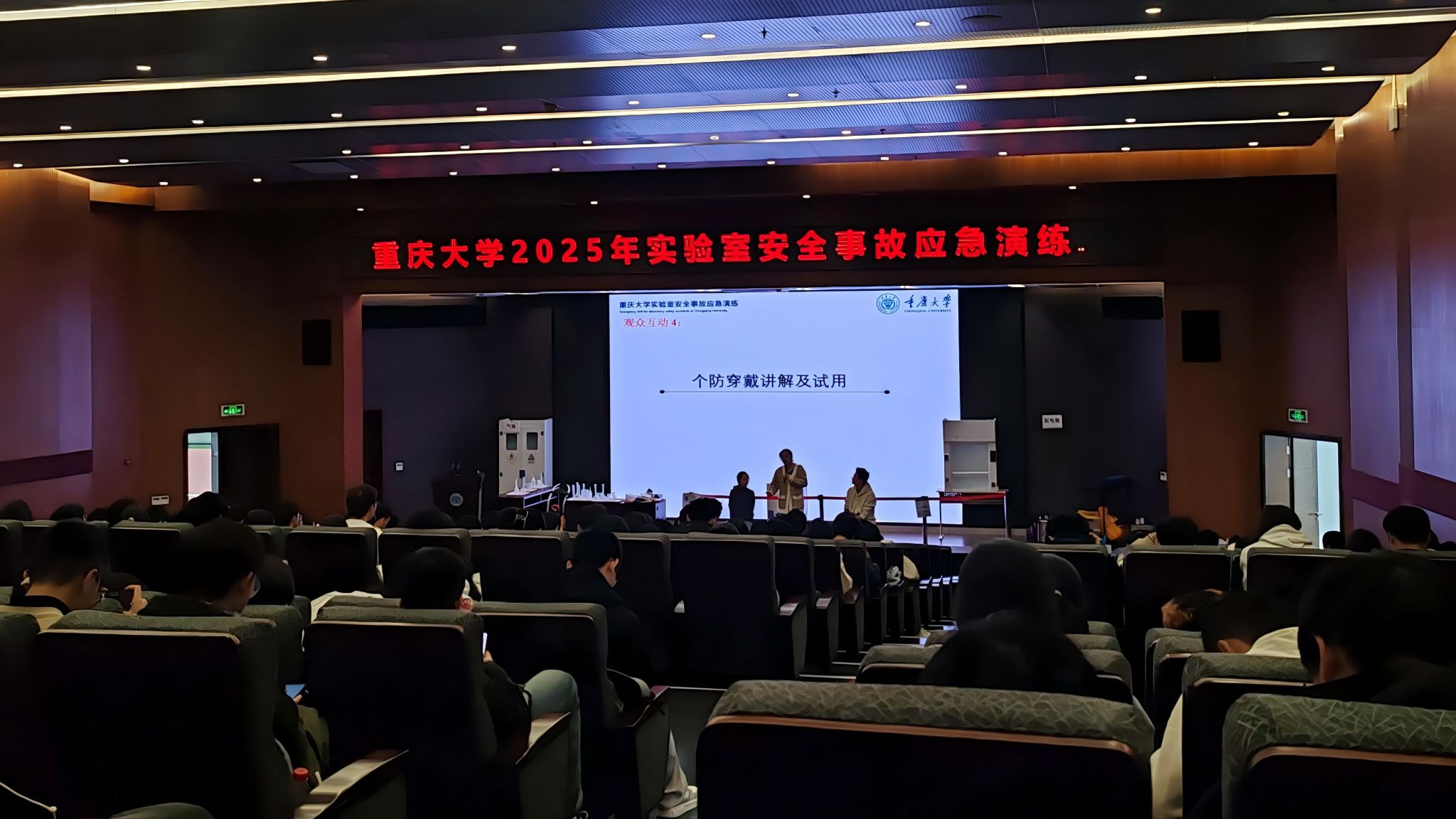 为进一步加强实验室安全文化建设,增强学生的安全责任意识,普及实验室安全知识,提升学生应对实验室突发安全事故的应急处置能力,2025年11月1日,由重庆大学实设处、保卫处主办,化工学院承办,应急演练项目组协办的“2025实验室安全事故应急演练”活动于LA101和理科楼广场顺利开展。